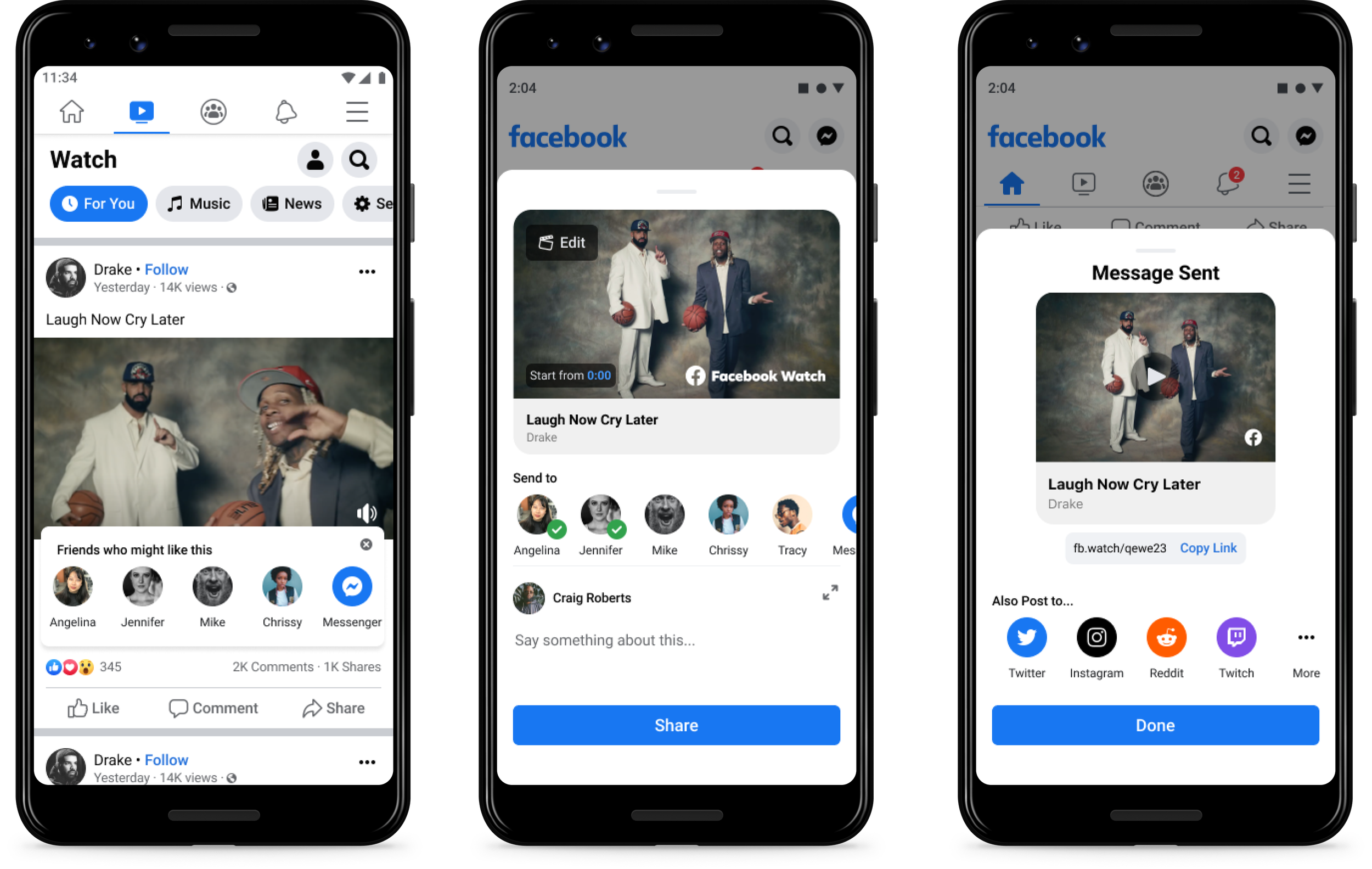 Develop an end-to-end sharing strategy that encompasses a wide range of video types and destinations, fostering seamless self-expression and communication between friends, family, and communities.